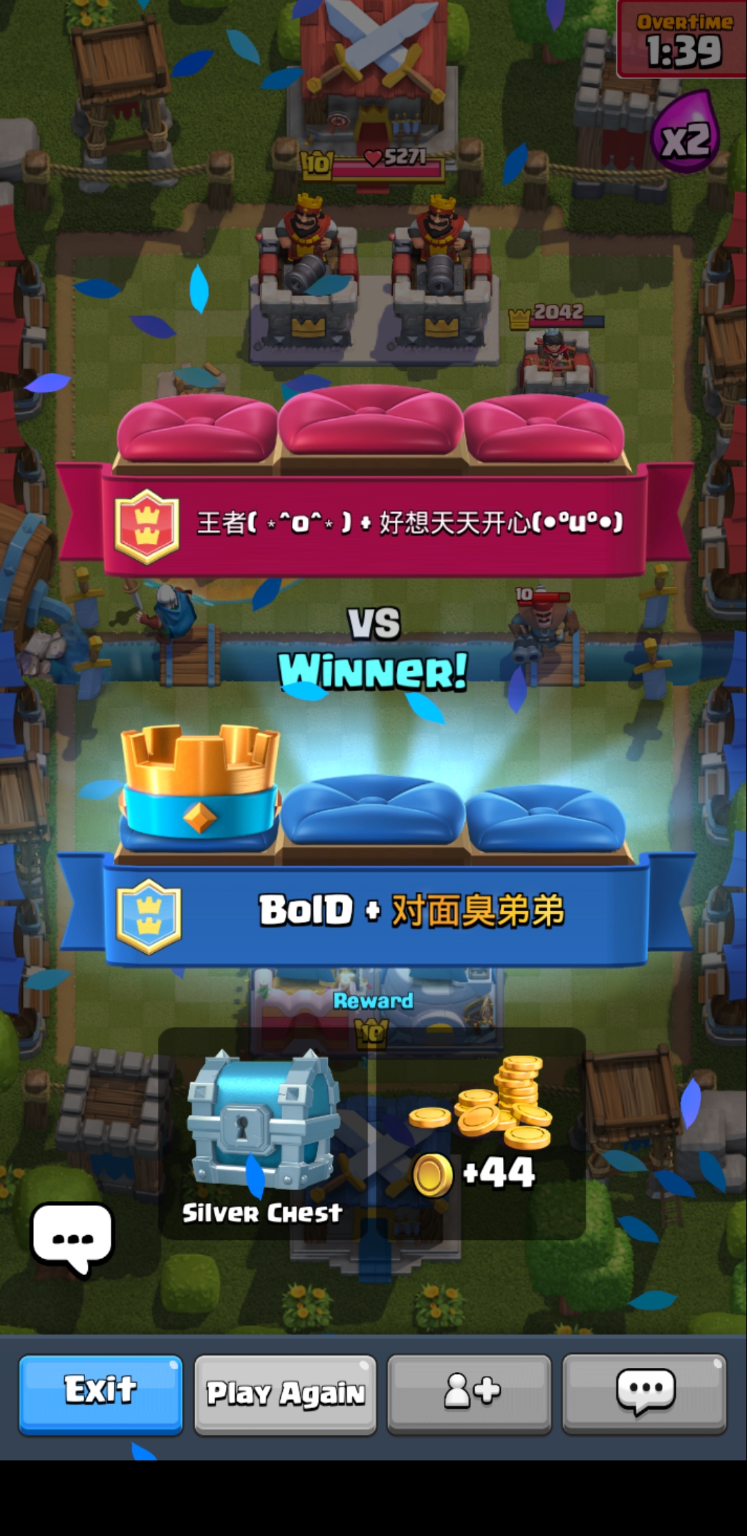 ngyihong Member Verified User Mar 26, 2020 6 0 1 280 5 Credits 15 Credits Apr 14, 2020 #1 2v2 win Attachments Screenshot_20200414-201925_Clash Royale.jpg 1.2 MB Views: 1,119